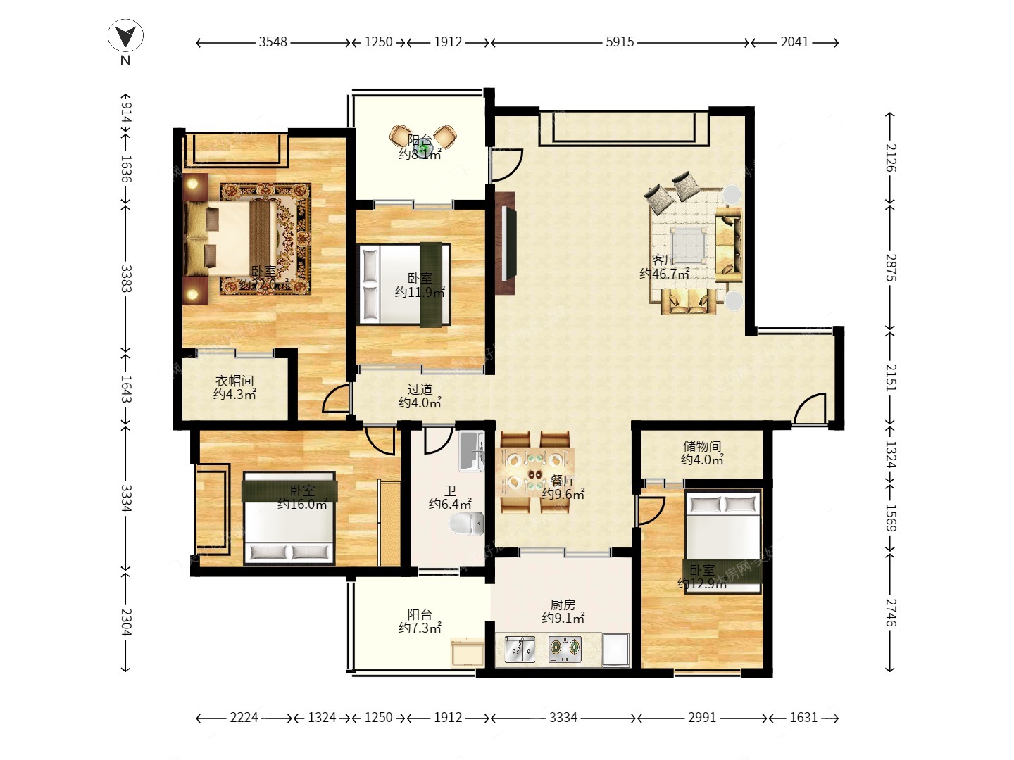 105万 凤凰大道 4室2厅 156㎡